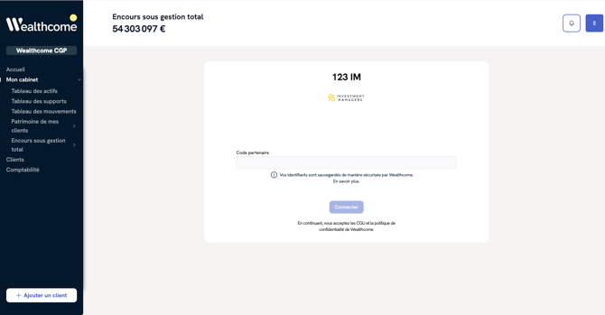 ⚠️ Attendez bien la confirmation d'123 IM que vos flux sont dorénavant poussés vers Wealthcome avant de renseigner votre code partenaire sur WealthPro.