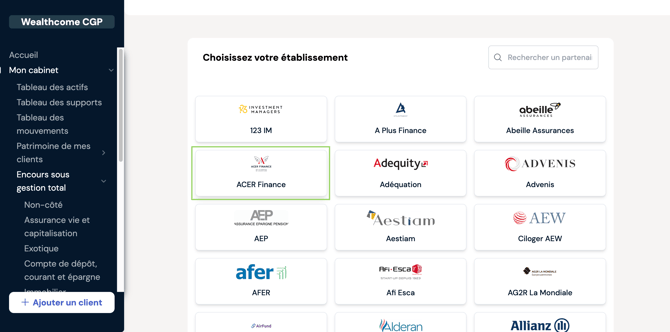 Vos données Acer Finance seront disponibles dans votre espace Wealthcome Pro sous un délai maximal de 24 à 48 heures.