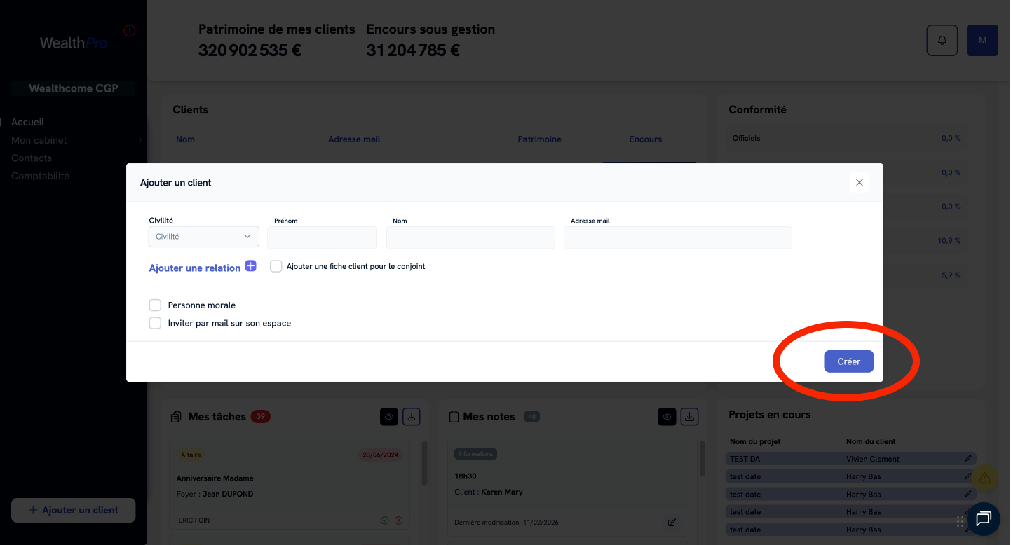 Vous avez la possibilité d’ajouter un nouveau client à votre interface WealthPro en quelques étapes simples.