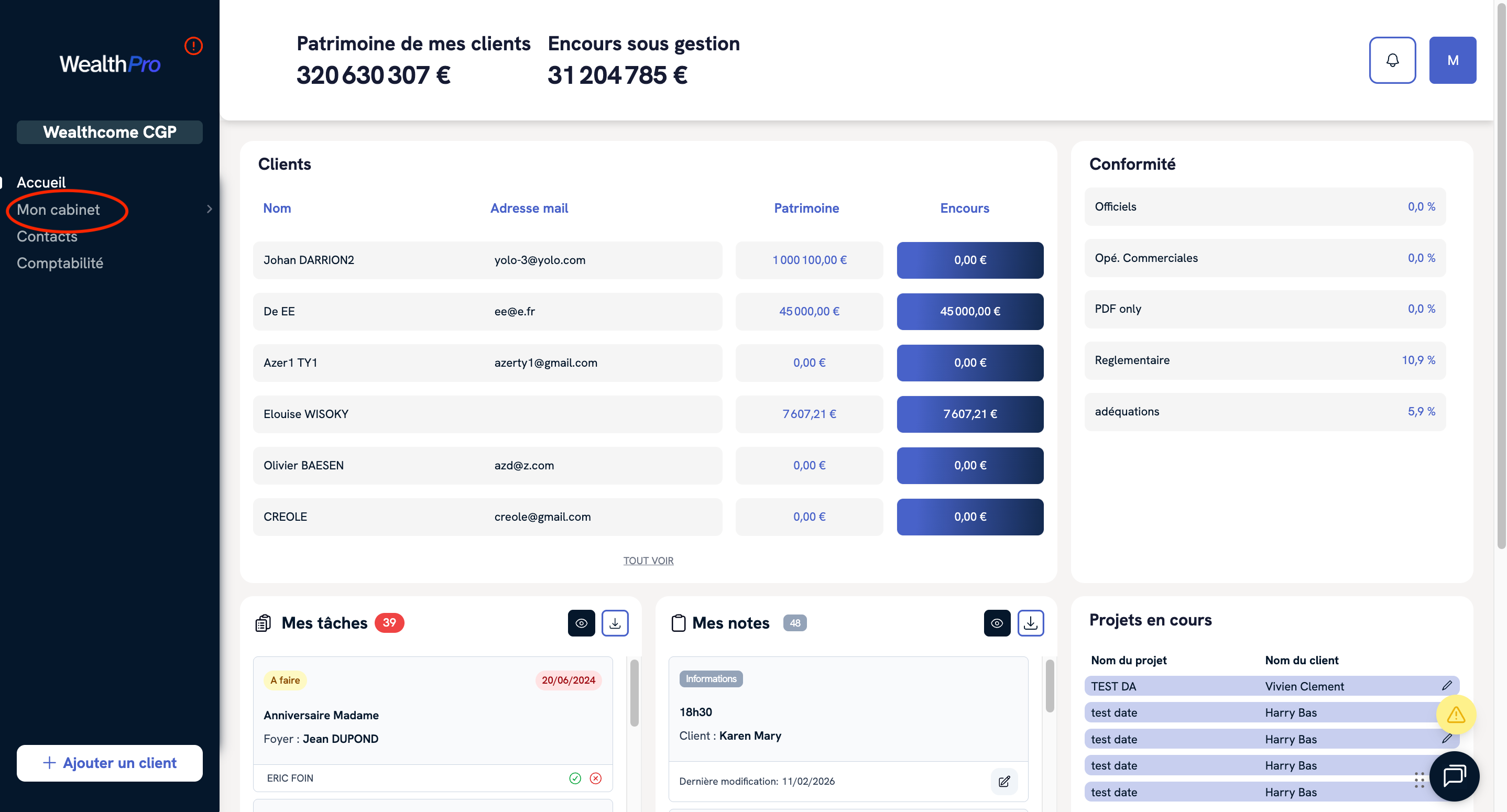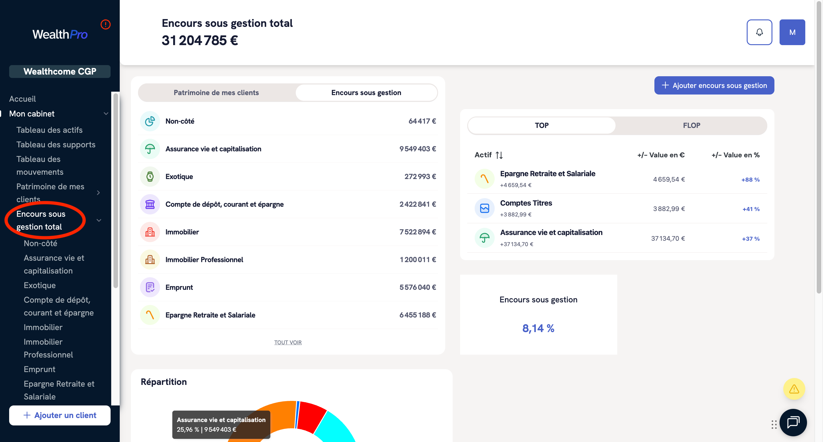 WealthPro vous permet de consulter une vue consolidée des encours total géré par votre structure