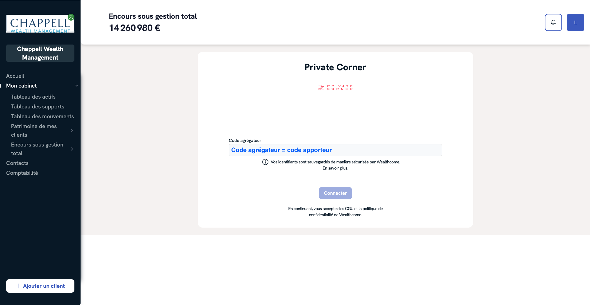 Comment agréger mes données clients Private Corner sur WealthPro ?