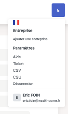 Finalement, si vous voulez accéder aux paramètres et que vous avez besoin d’aide ou vous voulez créer/ ajouter un autre cabinet sur votre compte vous pouvez cliquer sur le carré bleu en haut à droite.